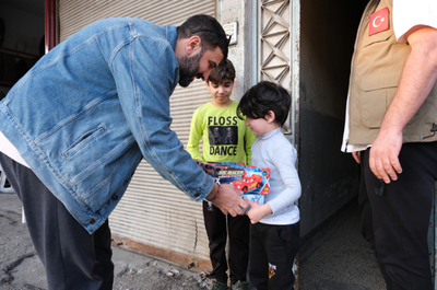 Çocuklarımızı unutmuyor; onlara kıyafet, ayakkabı ve oyuncak alarak yüzlerini güldürüyoruz.